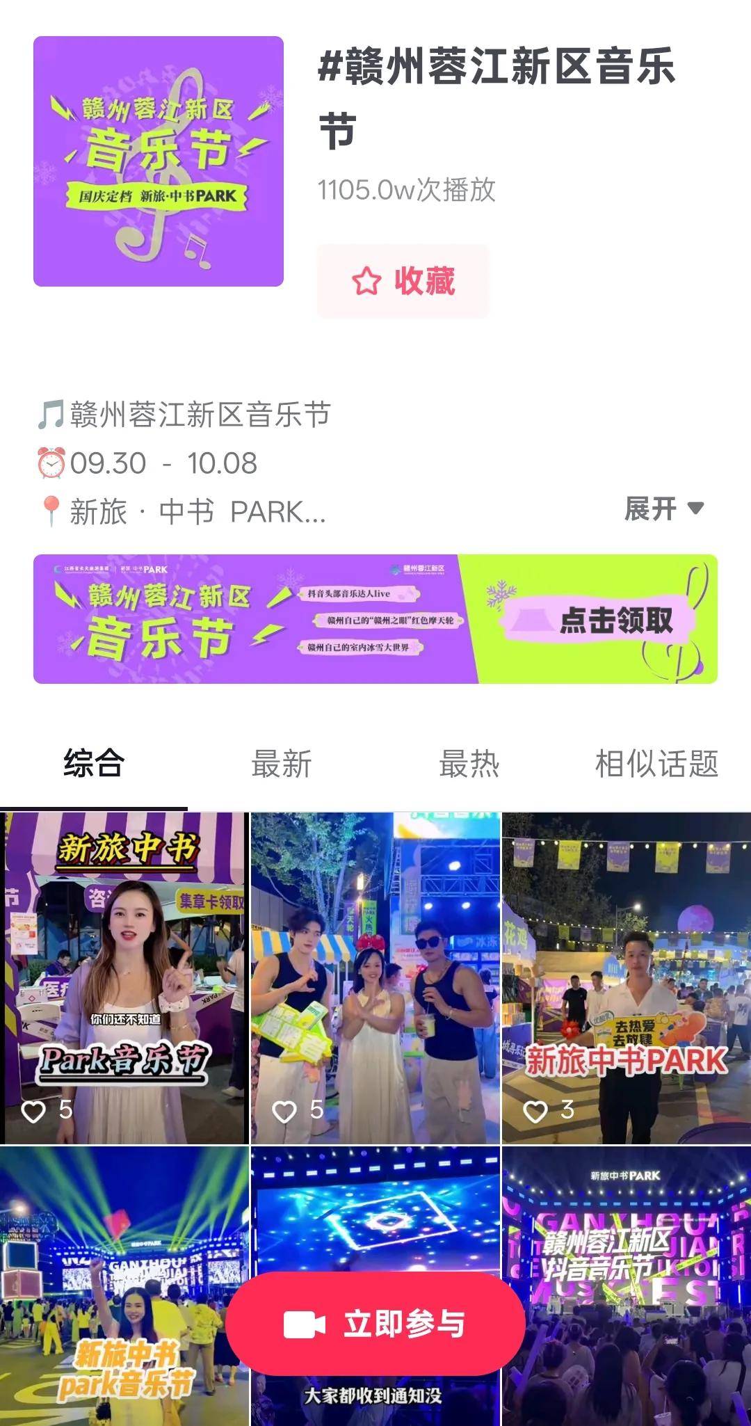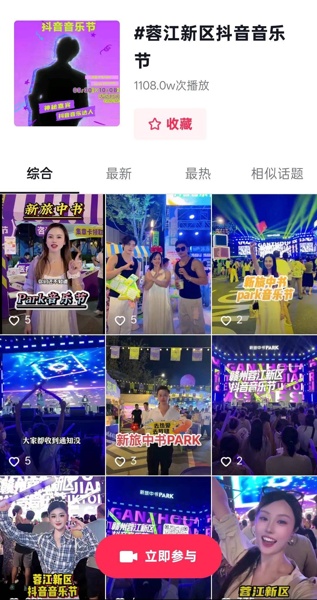 还有超多抖音、小红书达人疯狂打卡,分享音乐节活动现场的精彩瞬间,带动新旅·中书PARK多平台账号粉丝蹭蹭涨。抖音话题 #蓉江新区抖音音乐节# 播放量超1108万、#赣州蓉江新区音乐节 #播放量超1105万,宣发曝光量十分可观,持续为线下活动强势引流。