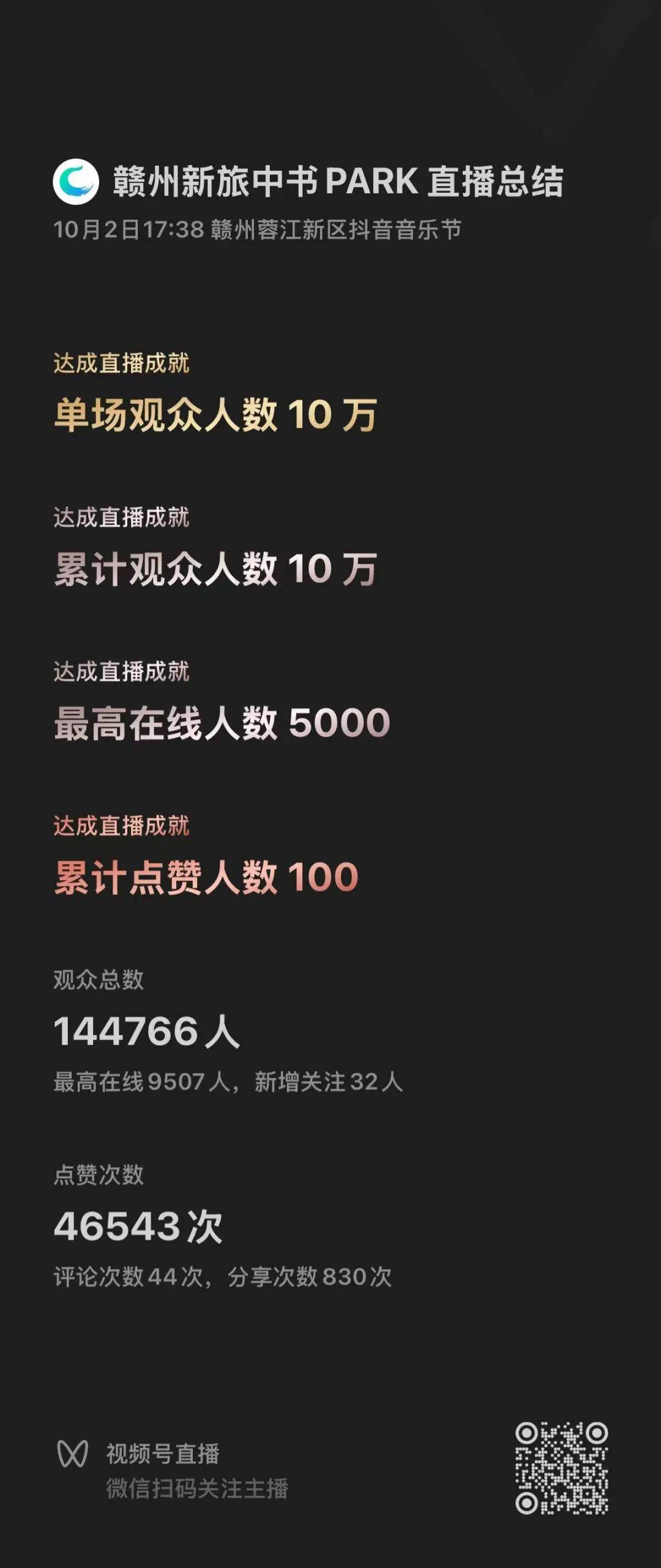 活动期间,新旅・中书 PARK视频号同步开启直播,累计观看量超20万,好多人隔着屏幕都感受到了现场的嗨!极大提升了活动影响力与项目知名度。
