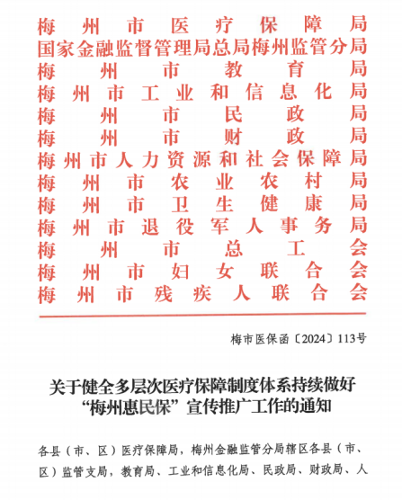梅州惠民保是由政府引导、支持,由13个部门联合发文推动的普惠定制型商业健康补充保险,与基本医疗保险、大病保险相互衔接、互为补充,是加强“1+3+N”的多层次医疗保障体系建设的重要一环,有效减轻群众大病、重病的个人负担,防止因病致贫返贫,持续有效守护梅州市民的“梅”好生活。