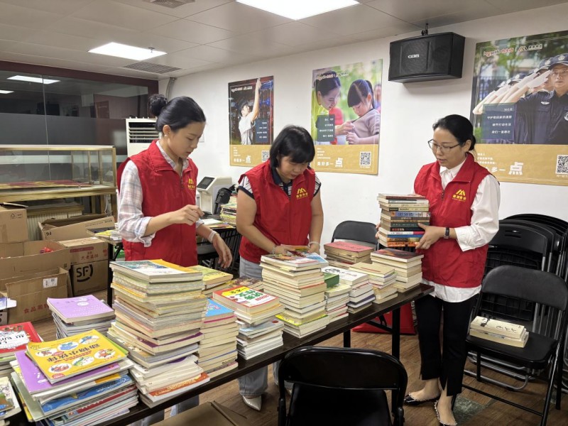 康景物业员工志愿者整理捐赠书籍
