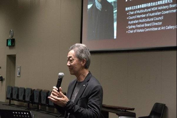 (新南威尔士州多元文化事务署顾问委员会主席陈建青发表致辞)
