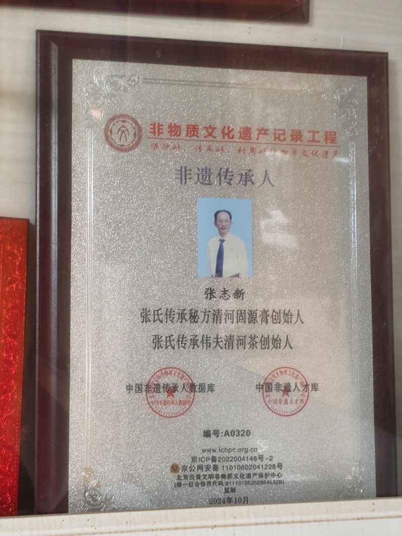 张医师自创的张氏传承伟夫清河护肝茶,有蔬肝解毒,扶正去邪之功效。效果显著,让很多患者群体受益。并已给此产品申请了企业执行标准批号。