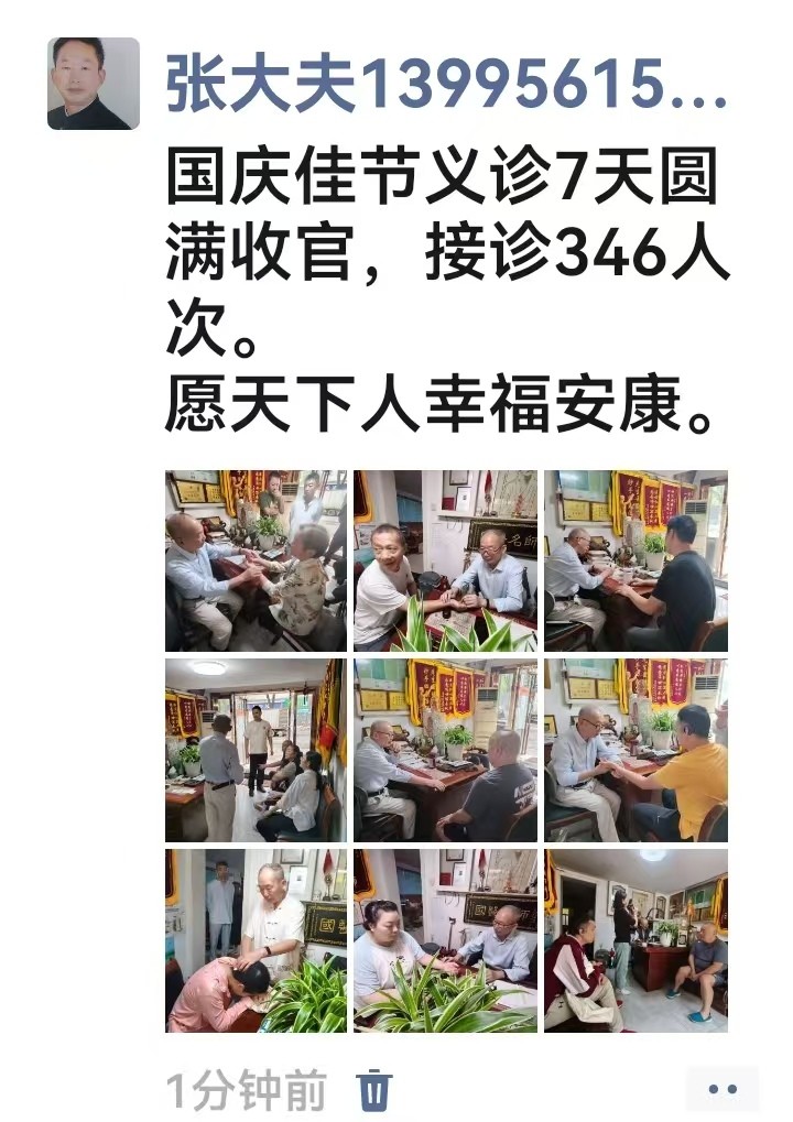 张医师在2025年国庆假期的7天义诊活动中,共接诊了346人。张医师在这期间非常忙碌,且高效的为患者提供了医疗服务。体现了他对公众健康的积极贡献和高度责任感。这样的活动不仅有助于缓解当地医疗资源的压力,也展现了医务工作者无私奉献的精神。