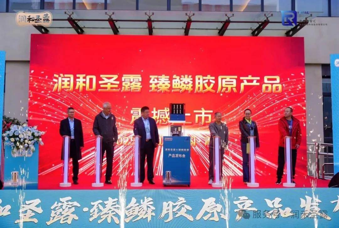 在万众期待中,新品发布会启动仪式将现场气氛推向高潮。各方代表共同触发启动装置,标志着“润和圣露•臻鳞胶原”正式面向市场,开启海洋健康新纪元。