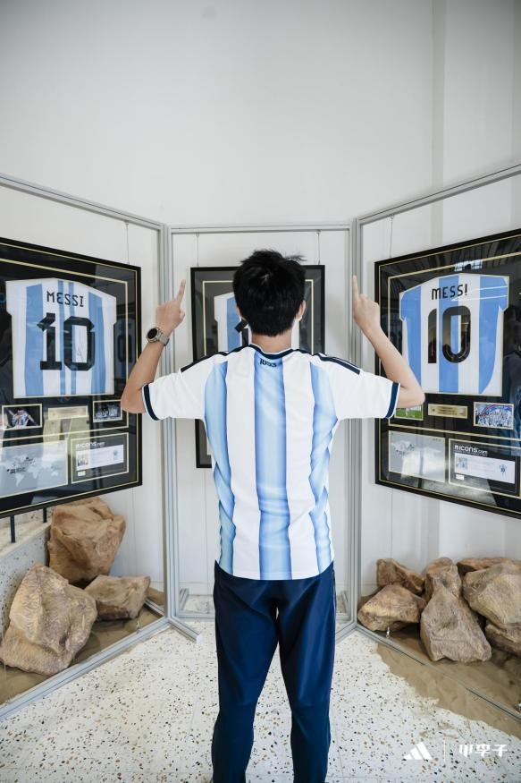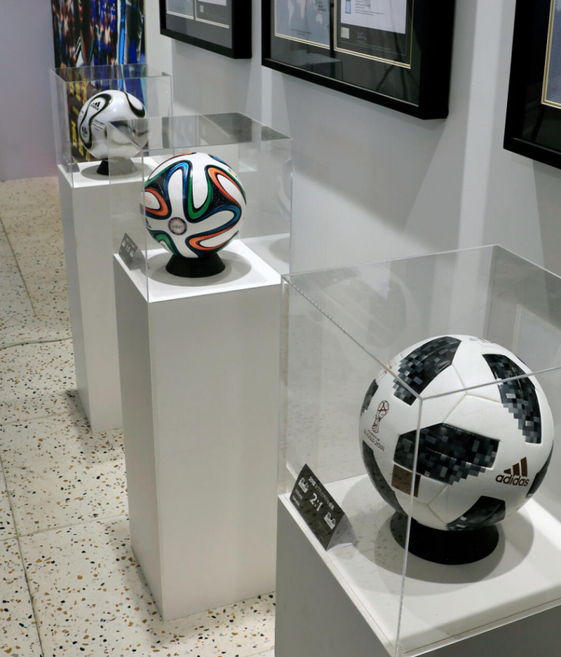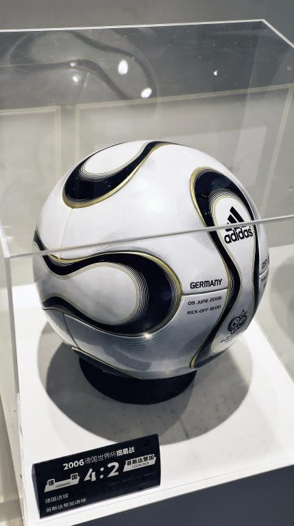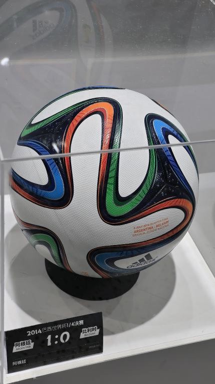 走进展区仿佛踏入了一条时空隧道。新球衣与历史球衣交错陈列让人感叹,adidas合作的德国西班牙、阿根廷三支劲旅的历代球衣交错陈列,每一件都承载着绿茵场的传奇故事。