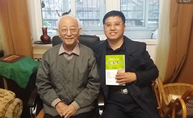 2015年春天北京,拜访原中央保健局局长86岁高龄王敏清先生并获其签名著作《健康第一》