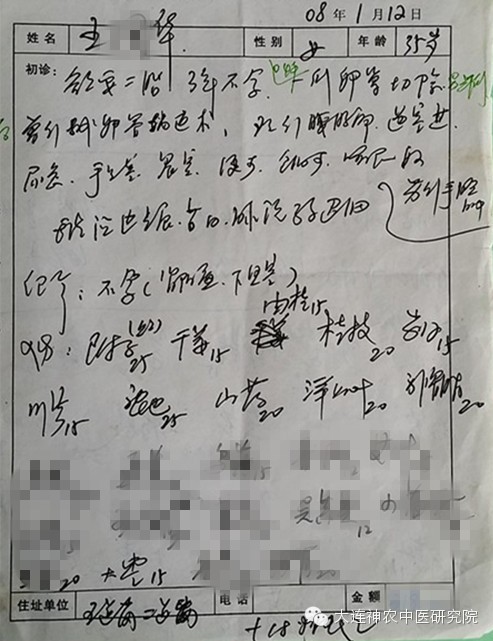 (林医生的原始病例处方。为保护知识产权,隐去方药)
