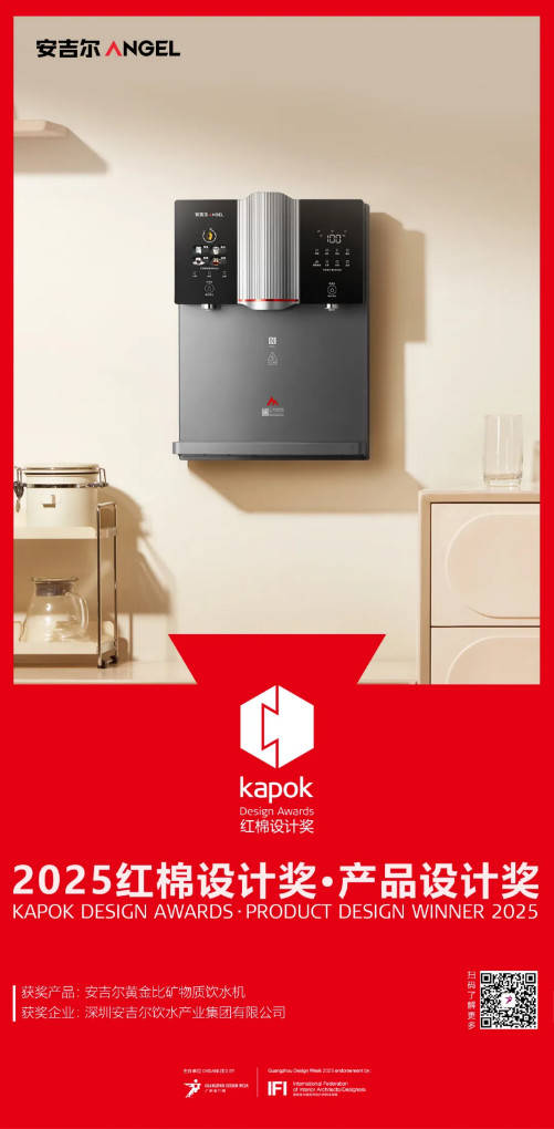近日,2025 红棉设计奖第三期获奖名单隆重揭晓,安吉尔黄金比矿物质饮水机凭借尖端净水科技、黄金比矿物质健康理念与意大利宾尼法利纳美学设计的深度融合,成功斩获 2025 红棉设计奖・产品设计奖。据了解,红棉设计奖始终聚焦 “提升当代人居生活品质”,践行 “设计为民生” 的核心价值观。此次获奖不仅是对产品技术革新、工业设计与健康生活理念完美融合的高度认可,更标志着中国净水行业正从单纯的功能竞争,迈向设计驱动产业升级的全新阶段。