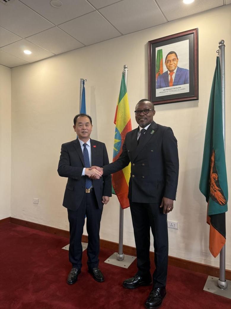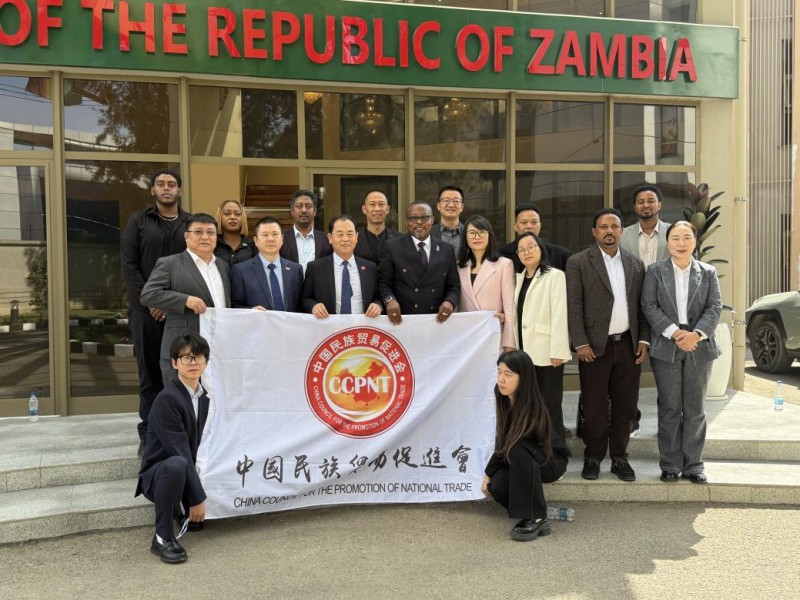 2025年12月10日上午,中国民族贸易促进会副会长张敏与埃塞俄比亚中国民族贸易促进会筹备处主任陈林携商务代表团,共同访问了赞比亚驻埃塞俄比亚大使馆。代表团受到赞比亚驻埃塞俄比亚大使汤姆·米凯洛布的热情接待。双方举行了富有建设性的工作会谈,就进一步深化中赞、中非经贸务实合作,拓展多领域交流进行了广泛而深入的探讨。