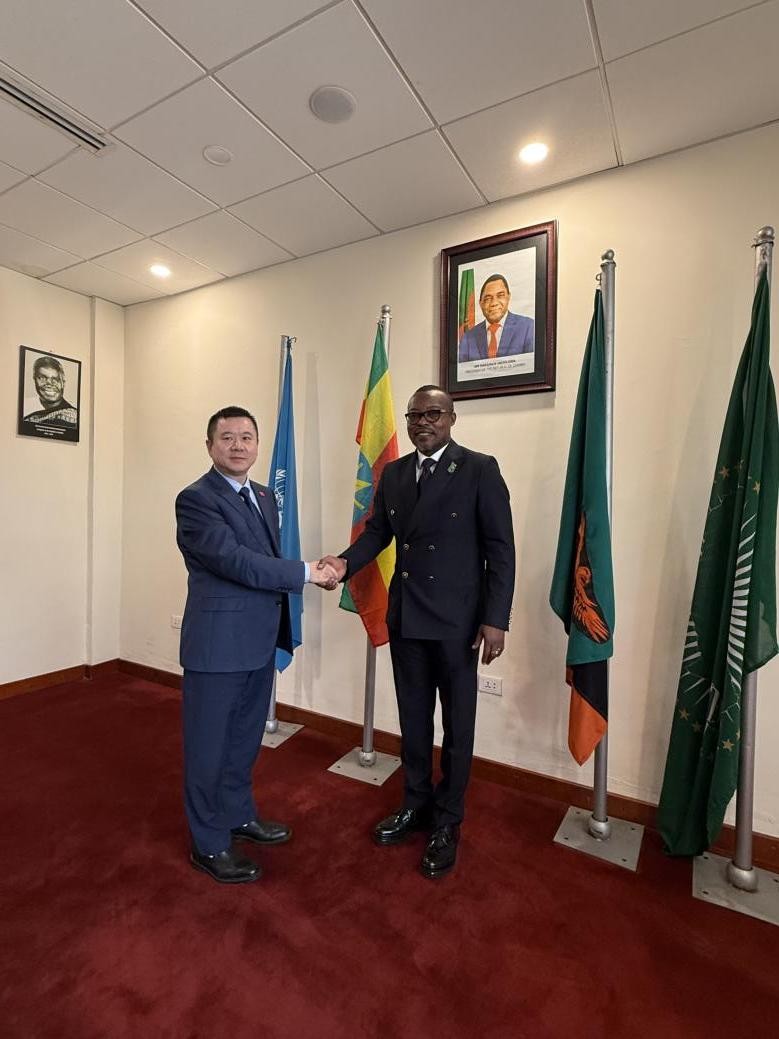 汤姆大使对代表团的到访表示热烈欢迎,并对中国民族贸易促进会在促进中非经贸关系中可能发挥的积极作用表示赞赏。他详细介绍了赞比亚当前的投资环境、重点发展领域及优惠政策,特别是在农业现代化、矿业深加工、基础设施建设等方面的巨大需求和合作空间。大使阁下强调,赞比亚和埃塞俄比亚政局稳定,致力于经济多元化发展,非常欢迎有实力、有信誉的中国企业前来投资兴业,参与赞比亚的经济建设。他期待与中国民族贸易促进会建立常态化沟通渠道,共同为企业合作搭建更顺畅的平台,推动更多务实项目落地。