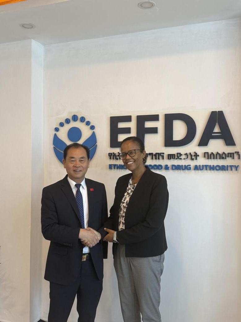 张敏副会长在会谈中表示:中国与埃塞俄比亚在医疗卫生领域互补性强、合作基础扎实。今天,我们不仅带来了中国企业对高质量药品、食品和化妆品‘走出去’的需求,更希望通过与EFDA的深度协作,把中国在监管科学、质量追溯和数字认证方面的经验分享给非洲朋友,让‘中国制造’和‘中国标准’在埃塞俄比亚乃至东非市场落地生根。赫兰局长关于在非洲就地加工中药原材料的提议极具战略眼光,我们将积极推动国内中药企业来埃考察,共同打造‘种植—提取—制剂’全产业链,实现互惠共赢。