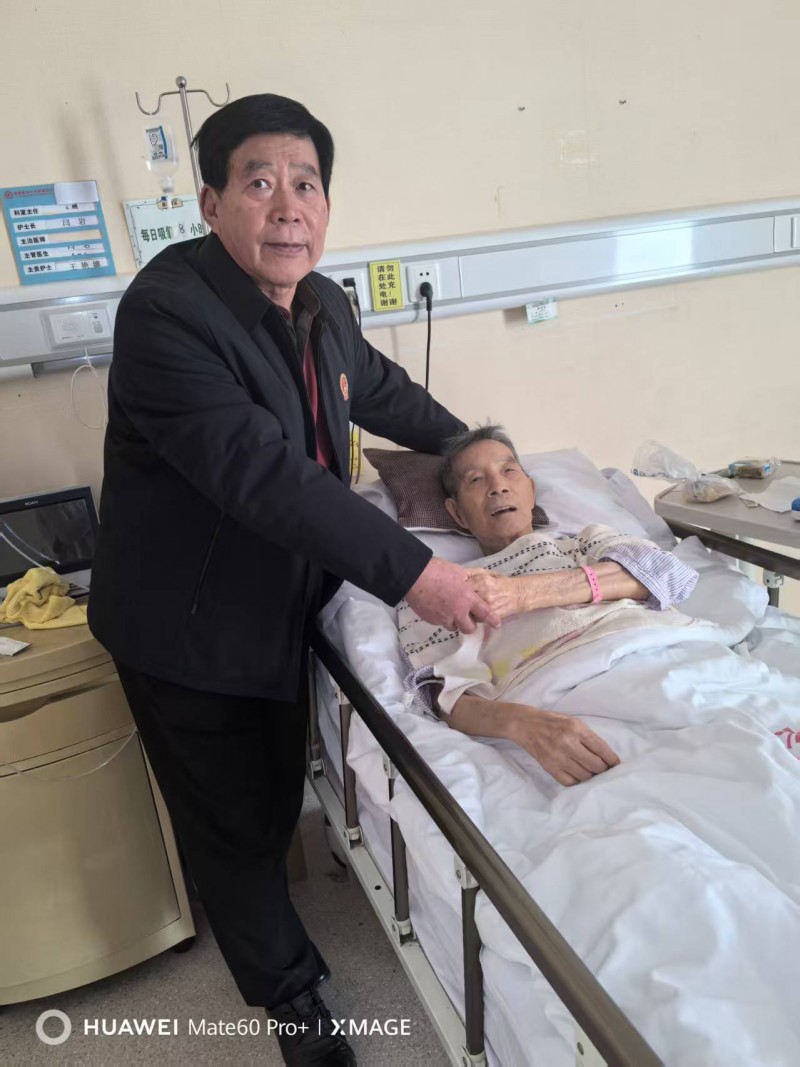 Academician Zhang Guotu visited Sheng Xingbang, the 96-year-old former director of the Criminal Investigation Bureau of the Ministry of Public Security and a key radio operator during the Yan 'an period, in the VIP ward of Beijing Fuxing Hospital. He also provided the Eighth Route Army soldiers, who had served for 37 years, with China's active long peptide rejuvenation soup.