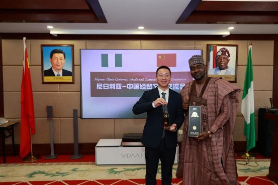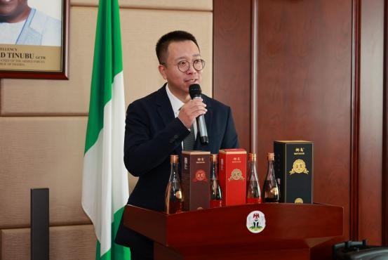 活动现场氛围庄重而热烈, 蒂贾尼 ·穆萨参赞在致辞中对椰岛御宴台的到访表示热烈欢迎,他高度认可椰岛御宴台的酿造工艺与品质追求,直言此次授奖不仅是对椰岛御宴台产品力的肯定,更是对中尼两国以美酒为媒介深化文化、经贸交流的期许。他表示,酒类文化是各国文化的重要组成部分,椰岛御宴台所承载的中国传统酿酒智慧与健康饮酒理念,值得被更多尼日利亚友人乃至非洲友人了解,期待未来能以这款金奖美酒为纽带,推动双方在更多领域实现友好互动与合作共赢。