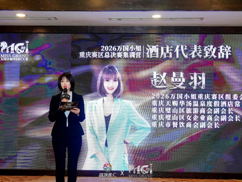 2026万国小姐重庆赛区组委会秘书长、重庆天赐华汤温泉度假酒店常务副总经理、重庆璧山区旅游商会副会长、重庆璧山区女企业商会副会长、重庆市餐饮商会副会长赵曼羽女士为参赛佳丽致辞表示:天赐华汤温泉将以优越的度假环境、完善的配套设施与专业的暖心服务,为本次总决赛和集训营提供全方位保障与强力支持。高规格赛事落地天赐华汤温泉,不仅是美丽与康养的完美结合,更将充分展现重庆温泉文旅特色与巴渝文化底蕴,助力重庆城市形象传播,有效促进文旅产业与时尚赛事的深度融合发展。