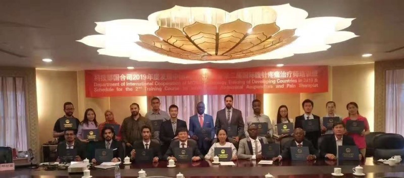 (2019年9月,承办科技部国合司第四期中医针灸援外培训班,邢纪国主任为科特迪瓦学员颁发结业证书)