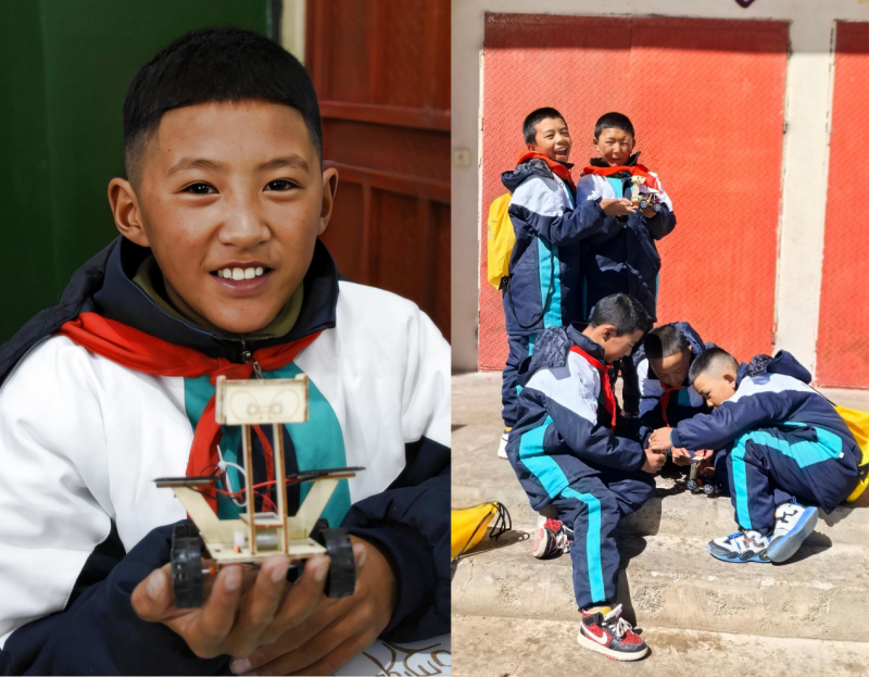 在《光明之力——驾驭“太阳神的光辉”》实践课程上,同学们既了解了申扎当地的太阳能优势,又亲手体验了将太阳能转化为热能制作“烤箱”以及太阳能转化为电能启动风车的神奇。在《小鹿快跑——探寻“生命之网的奥秘”》特色课上,小营员们认识到申扎多样的动植物资源,并通过化身“草”“小鹿”“狼”“阳光”“水源”,亲身体验生态系统的“动态平衡”,进一步体会生物多样性对申扎生态安全的重要性。在《净水之心——对抗“污染水质的魔怪”》、《生态之环——治愈“破坏生态的荒芜”》实践中,孩子们带着采样工具奔赴河流两岸,小心翼翼地采集河水样本并用快速检测工具箱检测水质;学生们沿着河岸捡拾塑料瓶、包装袋等垃圾,专家讲师及志愿者现场教学生们分辨可回收物与其他垃圾,让“垃圾变废为宝”的理念深入人心;在《生态环保总动员——滴水不羼”》实验课上,在专家讲师及志愿者的带领下,学生们见证了所采集的污水重回清澈,对水污染治理有了初步的了解和认识。