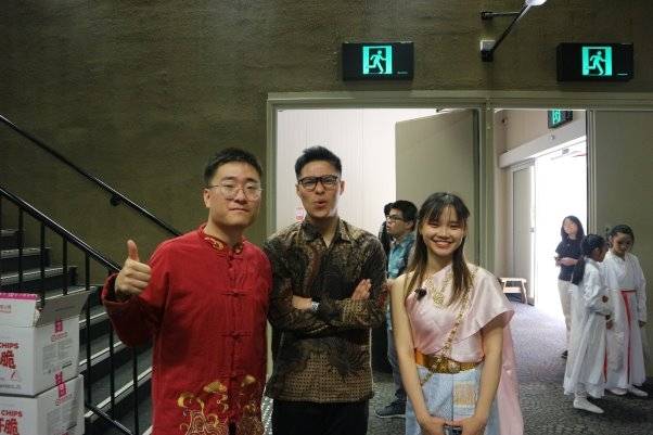 (左起:活动总召集人、麦考瑞大学中国学联主席沈泽奕、印度尼西亚学生会主席RAINALD GUNAWAN、泰国学生会主席CHERFAH LERTLAPWASIN)