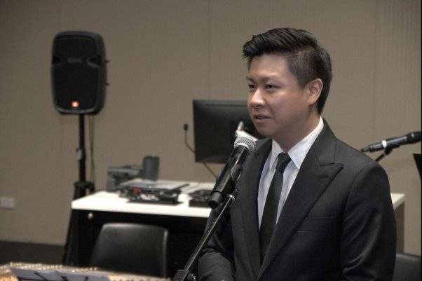 (新南威尔士州多元文化事务署顾问委员会主席陈建青发表致辞)