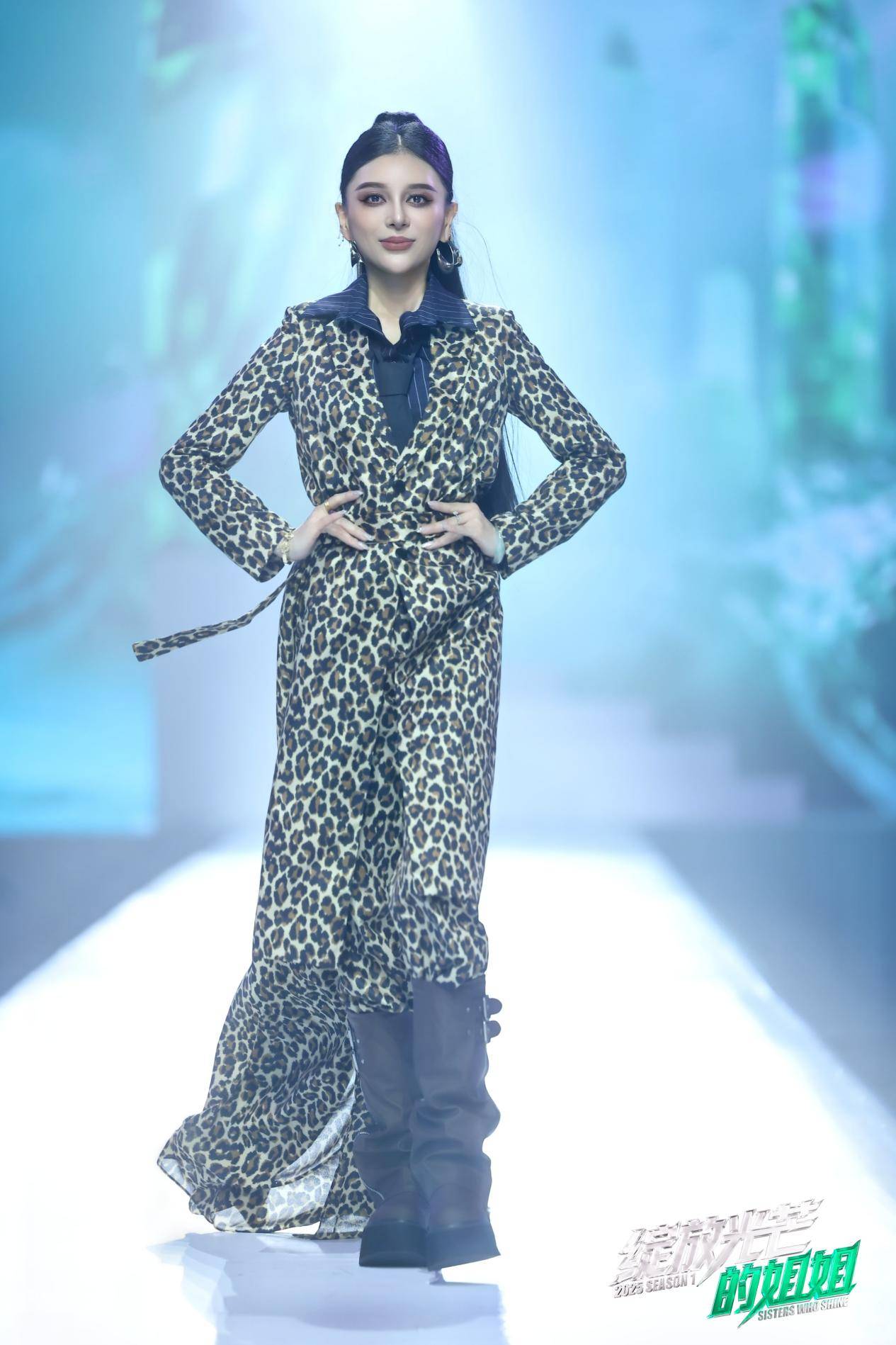 野性时尚风:Hold 住豹纹的气场女王豹纹元素向来考验驾驭力,而黄予歆姐姐一身豹纹长款风衣,以收腰设计、不对称裙摆与深色厚底靴的搭配,将“野性” 与 “优雅”巧妙融合。她双手叉腰站在 T 台中央,气场全开,把豹纹的 “挑战性” 变成了 “专属时尚标识”,尽显姐姐的时尚底气。