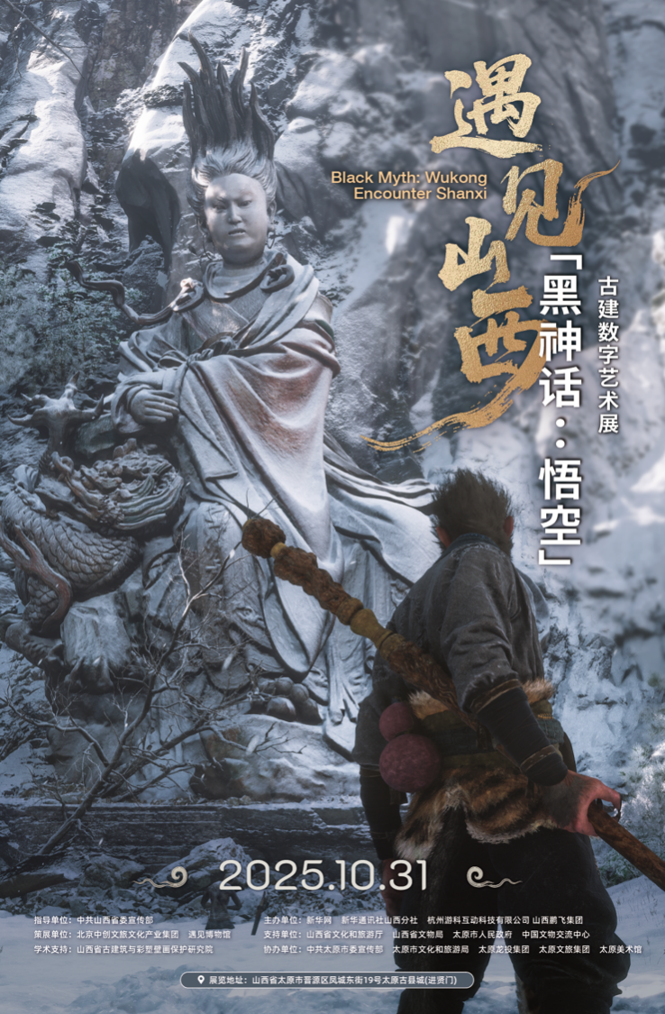 该展览是《黑神话:悟空》开发商游戏科学公司授权的线下展览,首次将数字游戏世界与真实古建场景深度融合。展览由新华网、新华社山西分社、杭州游科互动科技有限公司、山西鹏⻜集团共同主办,北京中创文旅文化产业集团、遇见博物馆策展,于11月1日起正式面向公众开放。