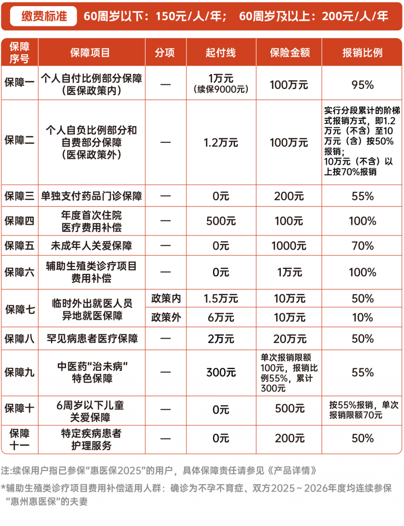 2026年度“惠医保”由惠州市医疗保障局、惠州市卫生健康局、国家金融监督管理总局惠州监管分局指导,4家保险公司共同承办,是惠州专属的惠民保障。