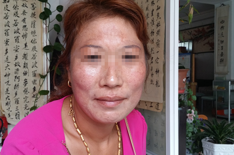 于**,女,46岁,黄河镇人,2014年6月20日,因头晕、头痛,乏力,心悸,眠差就诊,卵巢囊肿术后6年,停经6年。伴腰怕凉,心烦,大脑反应慢,记忆力下降,面部皮肤干燥,颧、额、鼻周色布满大片深褐色斑,如贴满了膏药。诊为心脾肾气虚,服中药一周,头晕头心烦痛消失,精神体力明显好转。服药一个月,诸症消失,面部色斑消退了大半,患者喜不自禁!