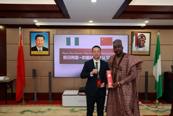 活动现场氛围庄重而热烈, 蒂贾尼 ·穆萨参赞在致辞中对椰岛御宴台的到访表示热烈欢迎,他高度认可椰岛御宴台的酿造工艺与品质追求,直言此次授奖不仅是对椰岛御宴台产品力的肯定,更是对中尼两国以美酒为媒介深化文化、经贸交流的期许。他表示,酒类文化是各国文化的重要组成部分,椰岛御宴台所承载的中国传统酿酒智慧与健康饮酒理念,值得被更多尼日利亚友人乃至非洲友人了解,期待未来能以这款金奖美酒为纽带,推动双方在更多领域实现友好互动与合作共赢。