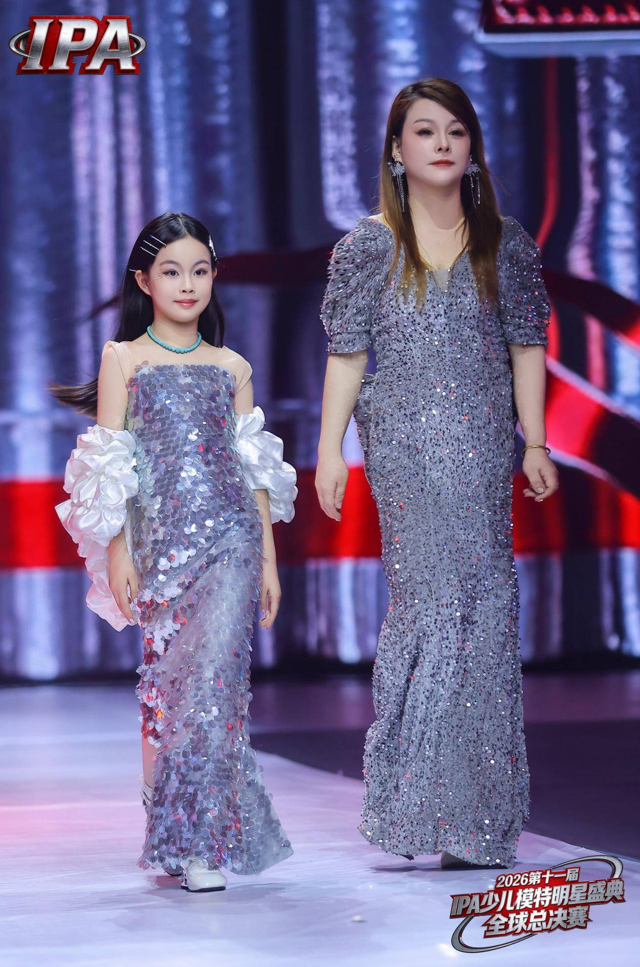 亲子秀环节中,陶镁雅与妈妈携手走秀,二人造型高级贵气、风格统一,步伐协调、互动自然,眼神间的默契尽显亲子温情。这场走秀为充满竞技感的舞台增添了治愈与感动,成为全场最暖心的画面。