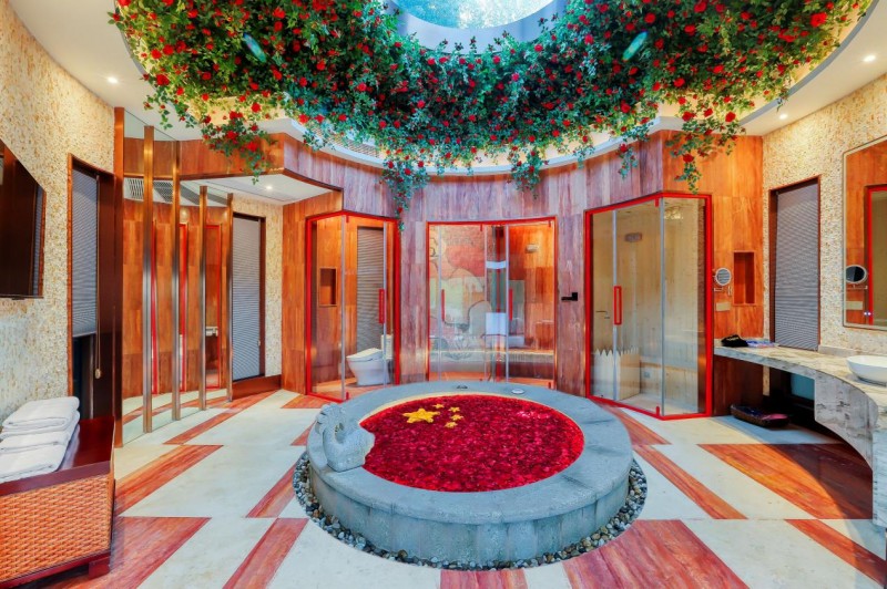 温泉依傍在金剑山森林公园边,城市中心区旁,园区绿意盎然,宛如一座天然氧吧。温泉水从地下3000米深处自然流出,富含多种矿物质,属于具有疗愈功效的“医疗型热矿泉”,能有效帮助所有来宾——尤其是赛事中的佳丽们——在紧张之余舒缓身心、恢复活力,重焕最佳状态。