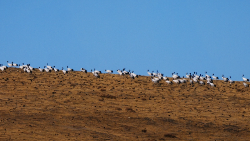 湿地作为本片核心亮点,是近百种水鸟的天堂。作为全球唯一高原鹤类、易危物种黑颈鹤的重要繁殖地,若尔盖湿地见证“鹤舞”求偶、雏鸟破壳、亲鸟守护的温情瞬间。影片完整记录黑颈鹤从求偶、筑巢、育雏到成长的全过程,展现这片土地对珍稀物种的滋养。目前,若尔盖湿地黑颈鹤种群数量稳步增长,成为全球濒危鸟类保护的成功样本。