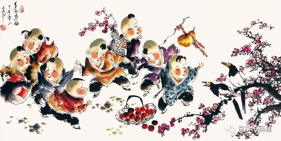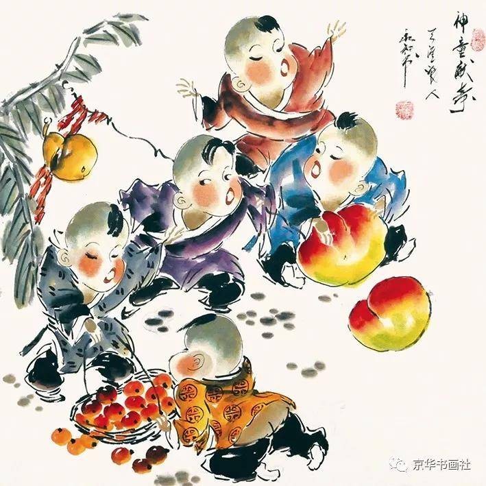 《童趣》是梁永和写意人物画的代表作之一,以儿童为主题,展现了他对生活的热爱与对纯真的追求。作品中,儿童形象天真烂漫,动作夸张生动,笔墨简练却传神,尽显梁永和写意人物画的功底。在情感表达上,《童趣》传递出对童年纯真的怀念与对生命本真的赞美,这种情感表达让作品具有强烈的感染力,也体现了梁永和对人性美好的追求。