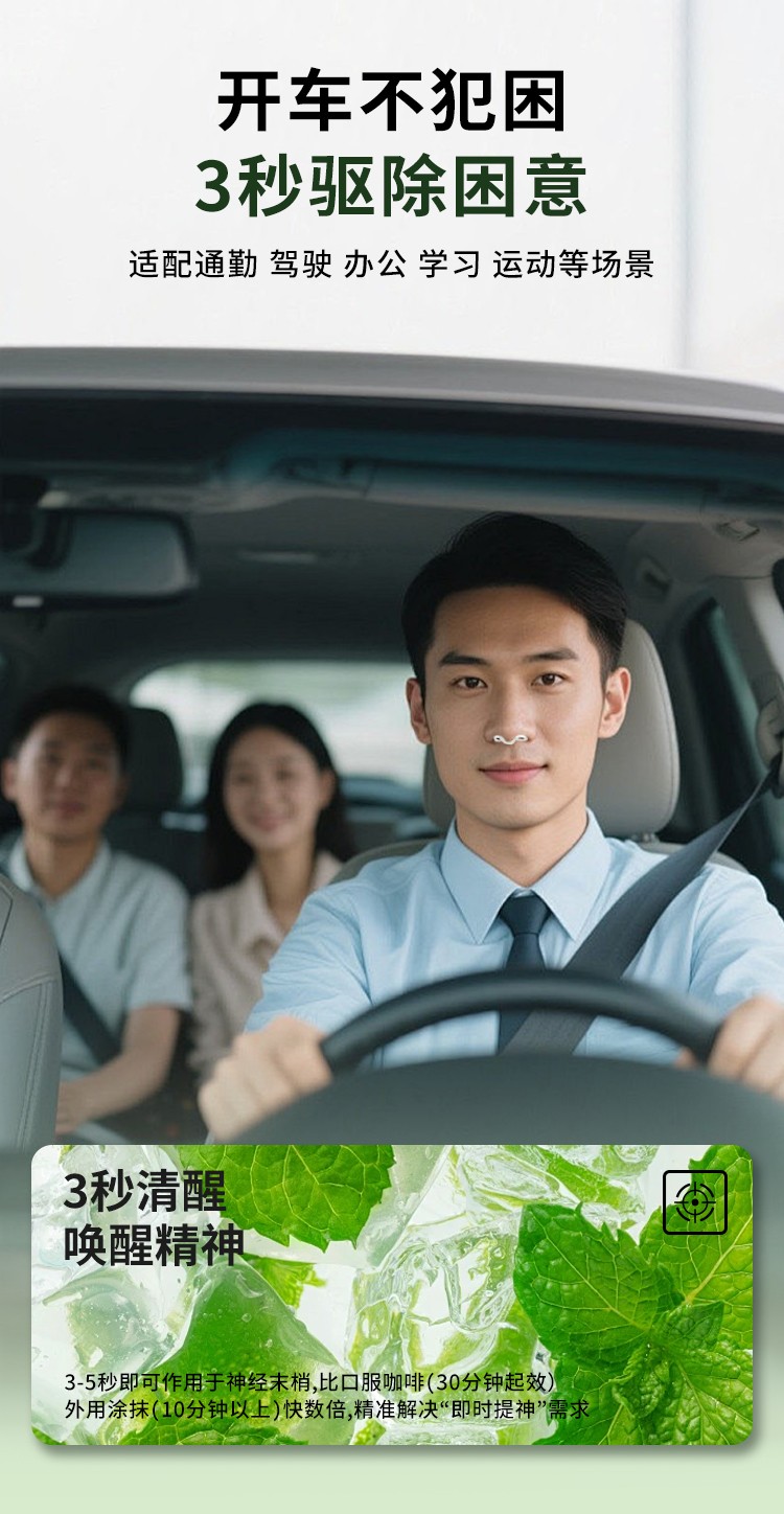 在场景应用层面,“鼻界”实现了全场景覆盖的精准适配。针对长途司机群体,产品可有效缓解驾驶疲劳,降低注意力不集中引发的安全风险;面向备考学生与办公人群,其温和提神效果能帮助提升专注力,助力高效完成学习与工作任务;对于熬夜加班、户外作业等特殊场景,小巧便携的设计让用户随时随地即可获取清凉活力,成为口袋里的“精力充电站”。